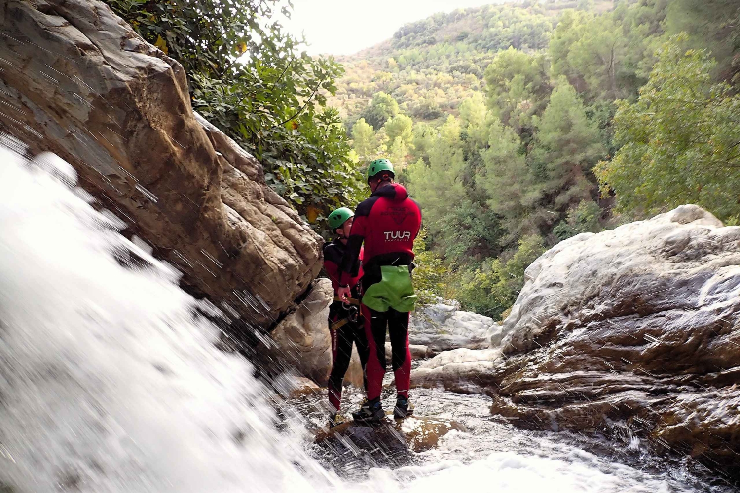 - Trae calcetines, zapatillas de andar por casa o de correr, cerradas, con buena adherencia en la suela. También puedes alquilar nuestros zapatos acuáticos para este barranco (ponte en contacto con tuur después de reservar con un mensaje de WhatsApp). Ten en cuenta que el calzado acuático no está permitido para el barranquismo.